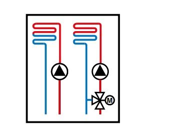 а) Автономная работа одного или нескольких модулей VM iSystem. Он(и) используется (используются) для погодозависимого управления дополнительными контурами отопления и ГВС, которое не зависит от котла. В этом случае необходимо заказать датчик наружной температуры (Ед. пост. FM 46, дополнительное оборудование).